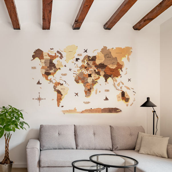 Transforma tu espacio vacío en una obra de arte que cuenta historias. Nuestros mapas de madera no solo decoran - inspiran, educan y crean conversaciones.