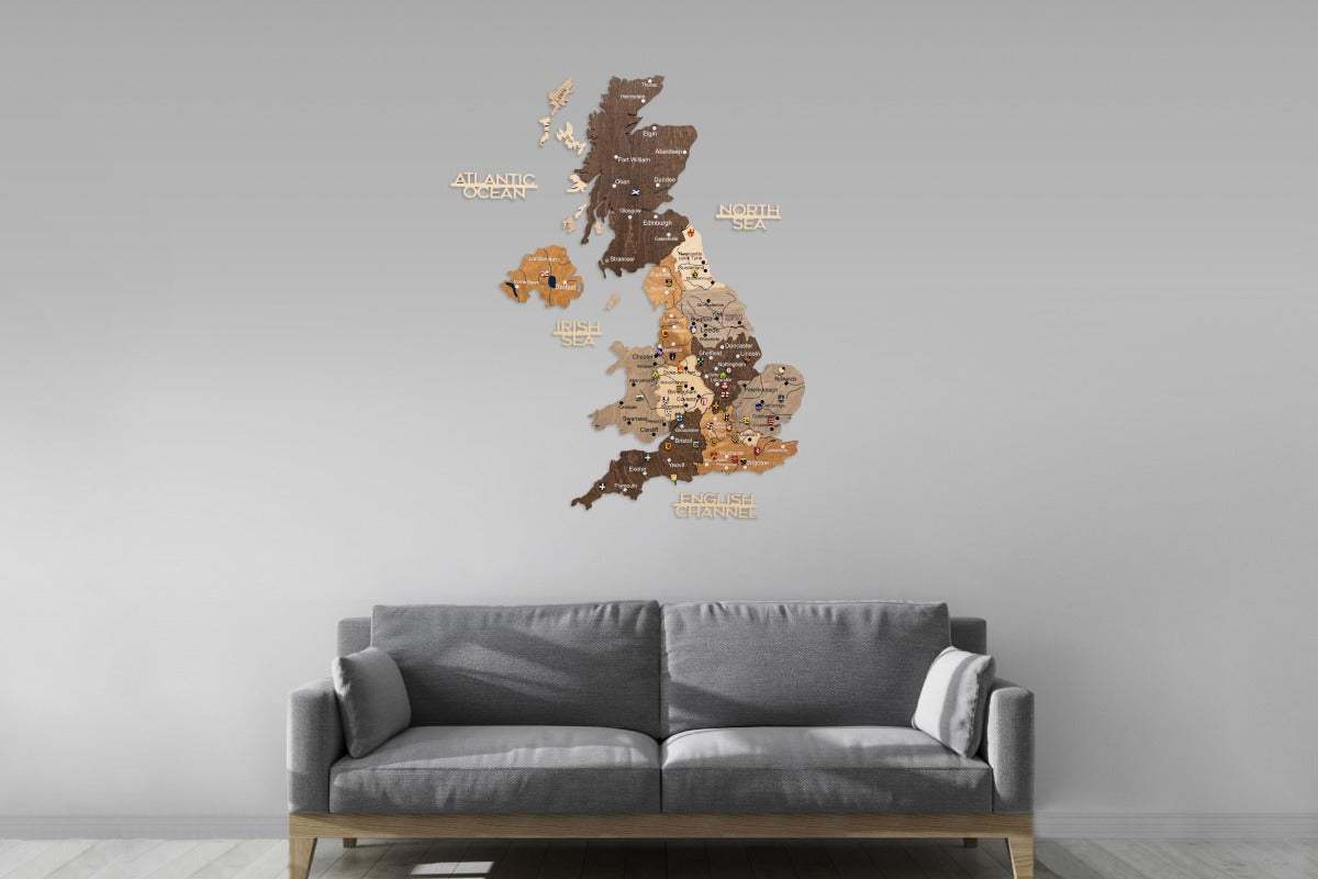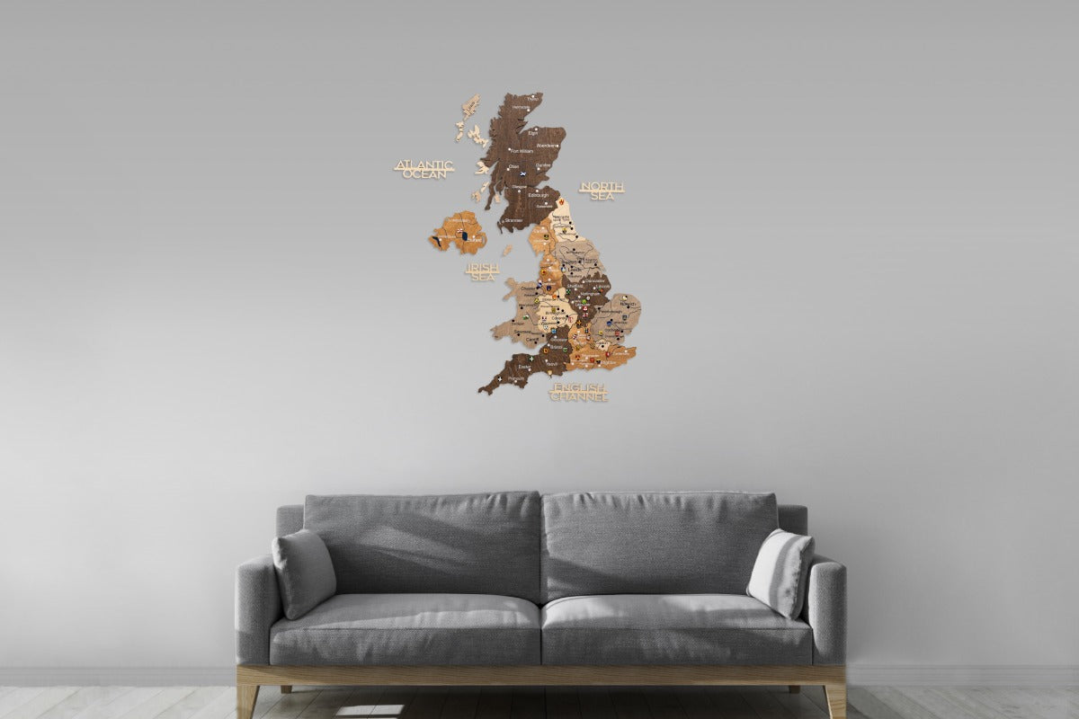 Descubre la vibrante artesanía con el Mapa de Madera del Reino Unido – Multicolor de Enjoy The Wood. Este detallado mapa de pared de madera captura el espíritu del Reino Unido mediante colores vivos, corte láser preciso y una calidad excepcional hecha a mano. Cada pieza resalta tus ciudades favoritas y recuerdos de viaje, convirtiendo tu pared en una historia de aventura e inspiración.
